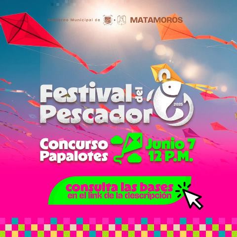 H. Matamoros, Tamaulipas.- El Gobierno Municipal de Matamoros, encabezado por el alcalde Beto Granados, extiende una cordial invitación a toda la comunidad para participar en el Concurso de Papalotes, que se llevará a cabo el próximo sábado 7 de junio a las 12:00 p.m. en el marco del Festival del Pescador 2025. Este evento busca promover la creatividad, la unión familiar y la tradición artesanal, ofreciendo una experiencia única para grandes y chicos.