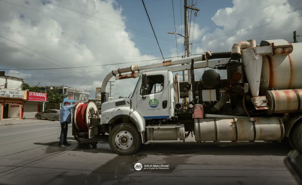 H. Matamoros, Tamaulipas.- Como parte de las acciones continuas de mantenimiento urbano, el gobierno municipal, a través del uso del camión vactor, llevó a cabo trabajos de limpieza y desazolve en la Avenida Benito Juárez, ubicada en la colonia El Saucito.