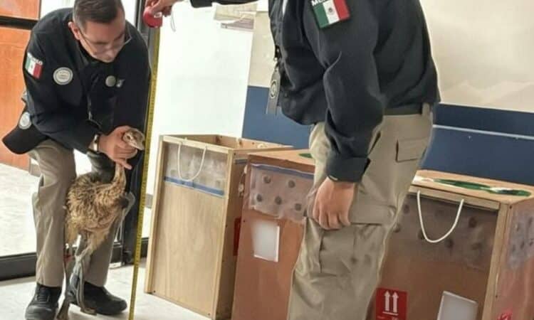 CIUDAD VICTORIA.- Cuando eran transportados vía aérea por una empresa de paquetería, tres avestruces fueron asegurados en el aeropuerto internacional de Reynosa por elementos de la Guardia Nacional.