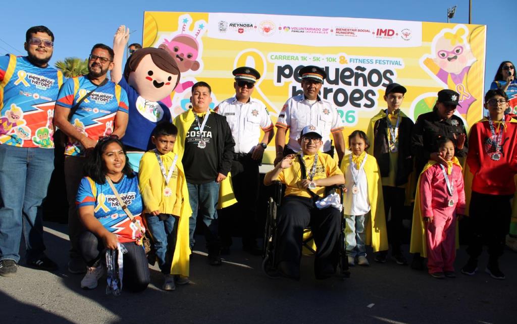 Reynosa, Tamaulipas.- En el marco del Día Internacional contra el Cáncer Infantil, personal de la Guardia Estatal y Dirección de Tránsito Estatal de la Secretaría de Seguridad Pública de Tamaulipas (SSPT) convivieron con familias reynosenses en la carrera “Pequeños Héroes” 2026.