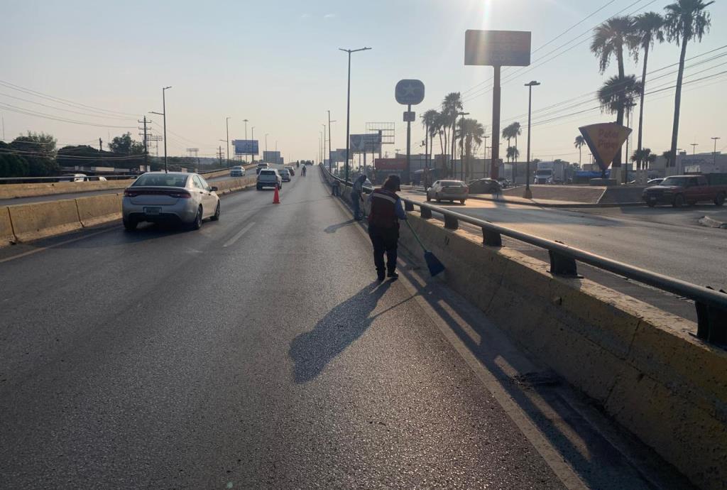 Entre estos cruces elevados, la dependencia rehabilitó el alumbrado público del puente Miguel Ángel, donde previamente fueron desarrolladas labores de limpieza detallada.