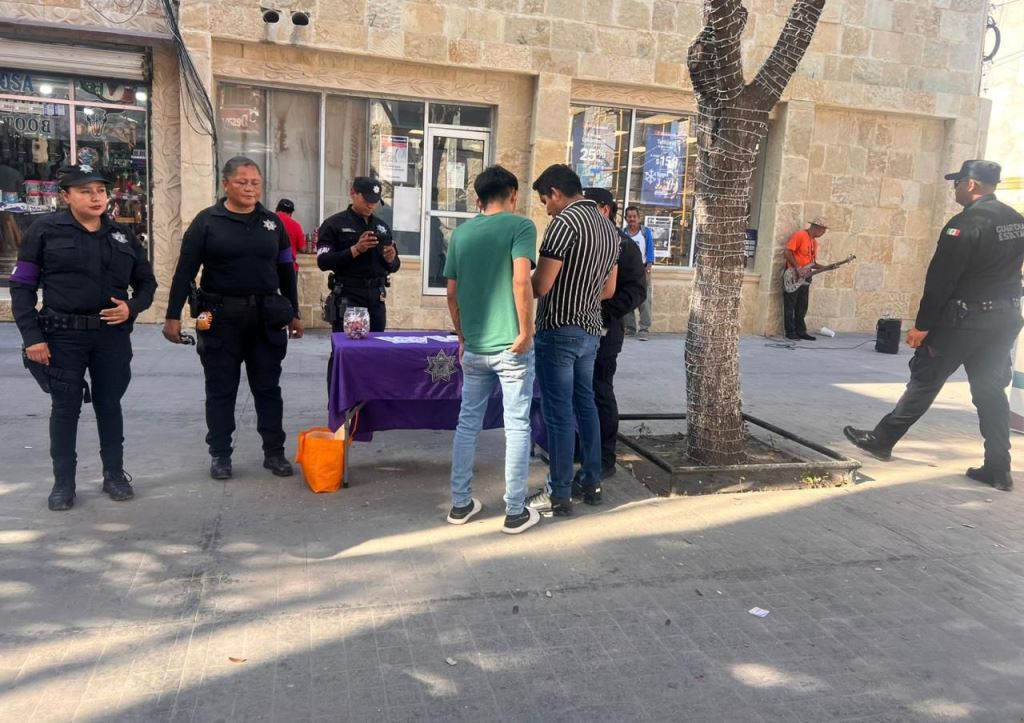 Estas acciones se reforzaron con la entrega de trípticos y violentómetros, así como los recorridos a pie tierra para preservar la seguridad en el primer cuadro de la ciudad.