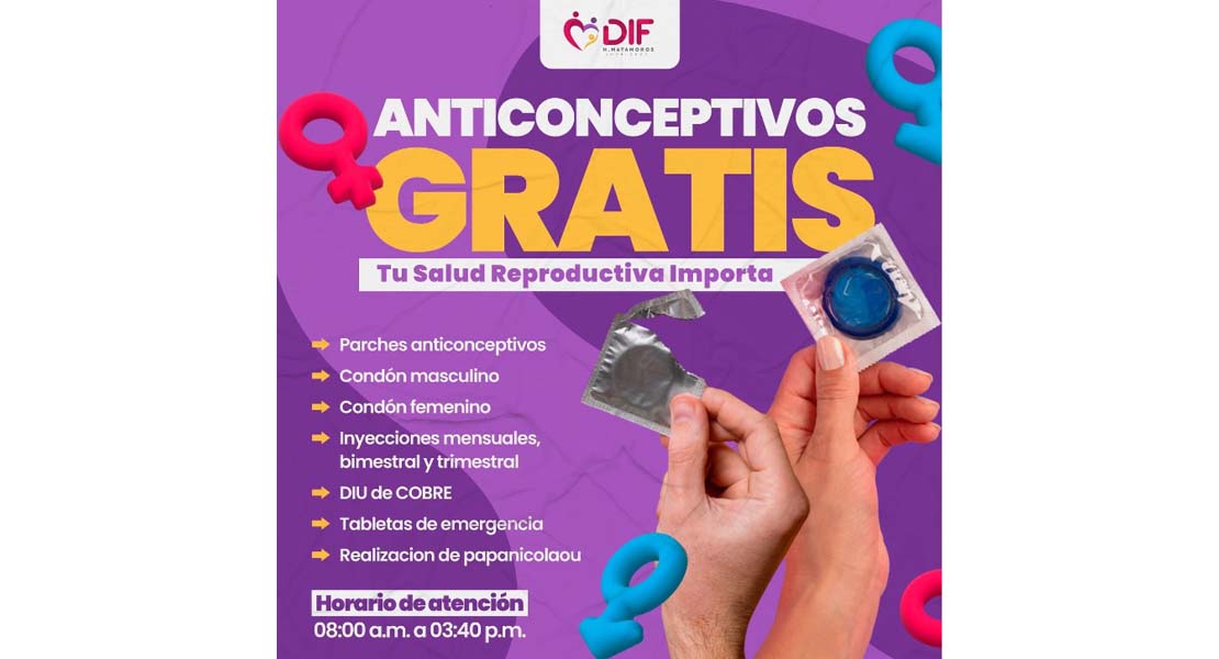 Matamoros, Tam.- El Sistema DIF Matamoros, invita a la población a participar en la Campaña Gratuita de Anticonceptivos, con el propósito de fomentar una sexualidad responsable y brindar orientación oportuna en materia de salud reproductiva.