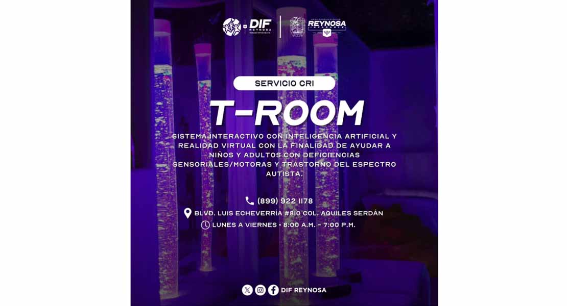 Reynosa, Tam.- El Sistema DIF-Reynosa que encabeza Carlos Luis Peña Garza, a través del Centro de Rehabilitación Integral, fortalece la atención a las familias mediante la incorporación del T-Room, un sistema interactivo que combina inteligencia artificial, realidad virtual y herramientas tecnológicas diseñadas para mejorar los procesos de rehabilitación.