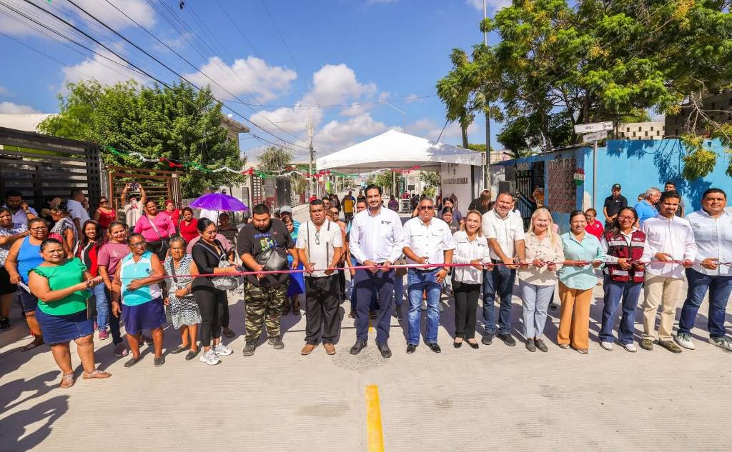 Dos cuadras con más de 1,700 metros cuadrados, fueron cubiertas de concreto de calidad, obra ejecutada entre las calles Concha Nácar y bulevar La Joya, donde las familias se reunieron a festejar con el Alcalde de Reynosa el tener una vialidad mejorada para su seguridad.