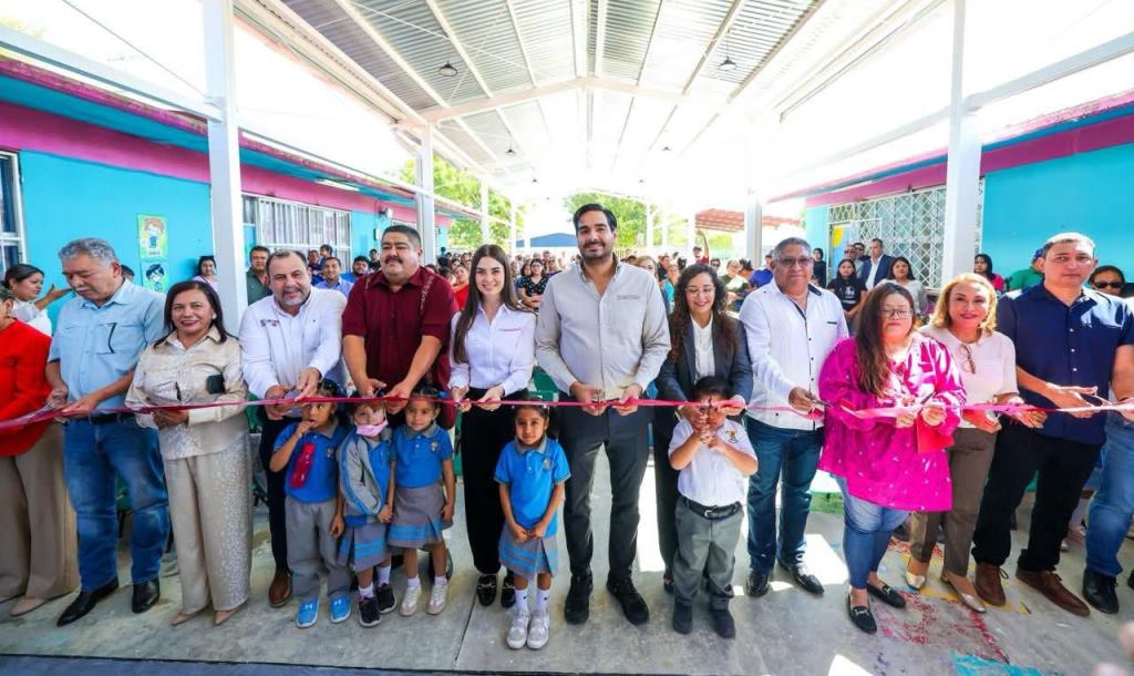 Reynosa, Tam.- Una Techumbre Metálica de 296 metros cuadrados, del Programa de Obra Pública Más Grande en la Historia de Reynosa, inauguró el Alcalde Carlos Peña Ortiz para beneficio de más de 500 alumnos del jardín de niños Juan B. Tijerina Villarreal, de Villa Florida, a donde acudió acompañado por su esposa Alejandra Yelitza Garza, Presidenta del Voluntariado DIF-Reynosa.