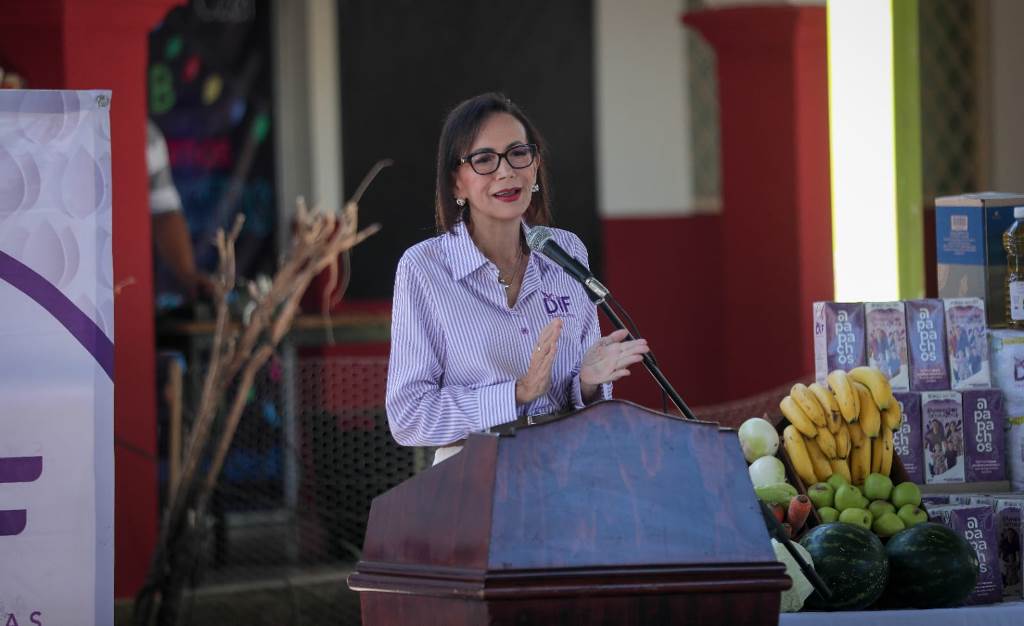 Güémez, Tamaulipas.- El Sistema para el Desarrollo Integral de la Familia de Tamaulipas que preside la doctora María de Villarreal, realizó la entrega simbólica de insumos alimentarios que enmarcaron el arranque del programa Desayunos Escolares para el ciclo escolar 2025-2026.
