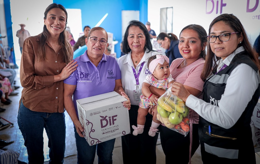 Xicoténcatl, Tamaulipas.- El Sistema para el Desarrollo Integral de la Familia de Tamaulipas, presidido por la doctora María de Villarreal, inició con la primera entrega de canastas alimentarias del año, la cual se llevó a cabo de manera simbólica en la región cañera.