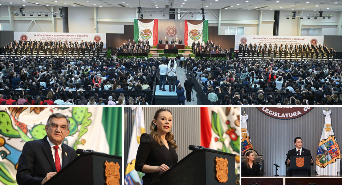 Durante la sesión pública, extraordinaria y solemne del Congreso del Estado, en el Polyforum de esta capital, y luego de la toma de protesta de las y los 147 magistrados y magistradas y juezas y jueces, a cargo del presidente de la Junta de Gobierno, diputado Humberto Prieto Herrera, el gobernador destacó que este acto deja para la posteridad y una imagen inédita, con la concurrencia del pleno de los tres Poderes del