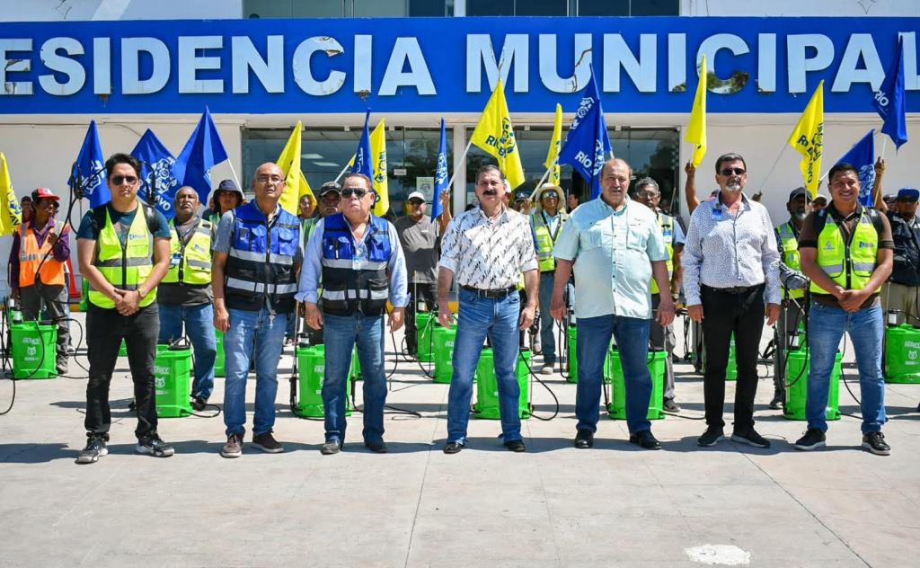 Río bravo, Tam.- El presidente municipal Miguel Ángel Almaraz dio banderazo de arranque de fumigación terrestre en la ciudad.