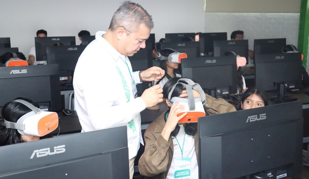 Indicó que este laboratorio está conformado por 32 equipos que estarán al servicio de los ocho planteles del estado. Su objetivo es llevar el conocimiento a través de experiencias significativas, permitiendo a las y los alumnos vivir el aprendizaje de forma inmersiva y memorable, como parte de su modelo académico.