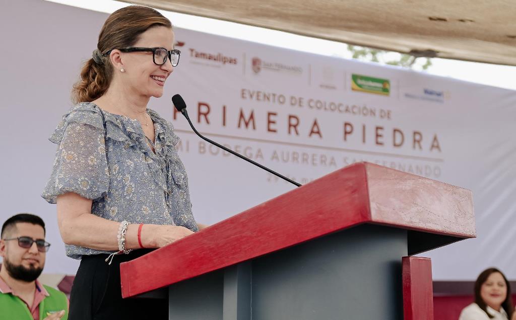 - Secretaria de Economía, Ninfa Cantú encabeza colocación de la primera piedra para construcción de la nueva unidad junto con la presidenta municipal Verónica Aguirre y Rodrigo Flores, director de Relaciones Institucionales de la empresa