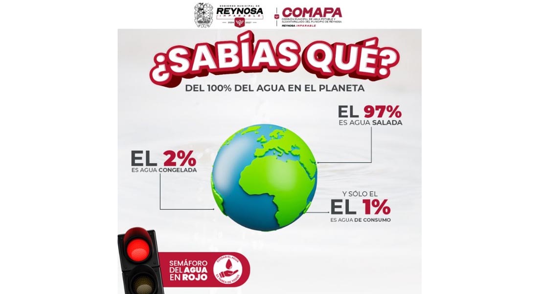 Reynosa, Tam.- La Comisión Municipal de Agua Potable y Alcantarillado de Reynosa hace un llamado a la ciudadanía a continuar implementando acciones diarias de cuidado del agua, como cerrar la llave mientras nos cepillamos los dientes, utilizar únicamente una cubeta de agua para lavar el auto o reducir el tiempo de la ducha a 5 minutos.