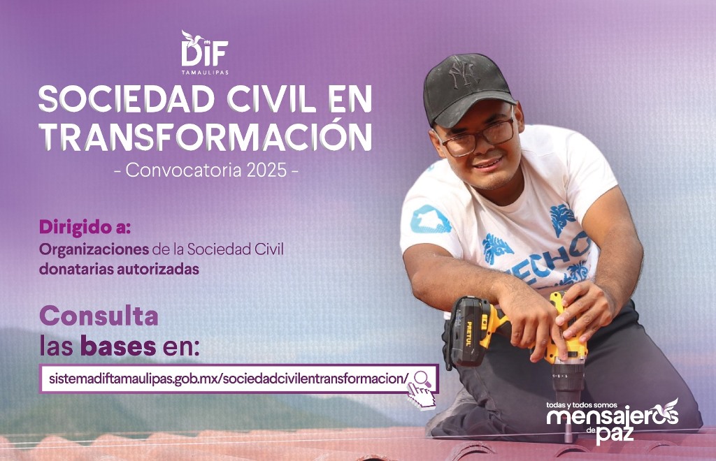 Ciudad Victoria, Tamaulipas.- El Sistema para el Desarrollo Integral de la Familia de Tamaulipas, presidido por la doctora María de Villarreal, invita a las organizaciones de la sociedad civil donatarias autorizadas, a presentar iniciativas y proyectos de asistencia social que impacten en la población de atención prioritaria con la finalidad de incidir positivamente en su bienestar.