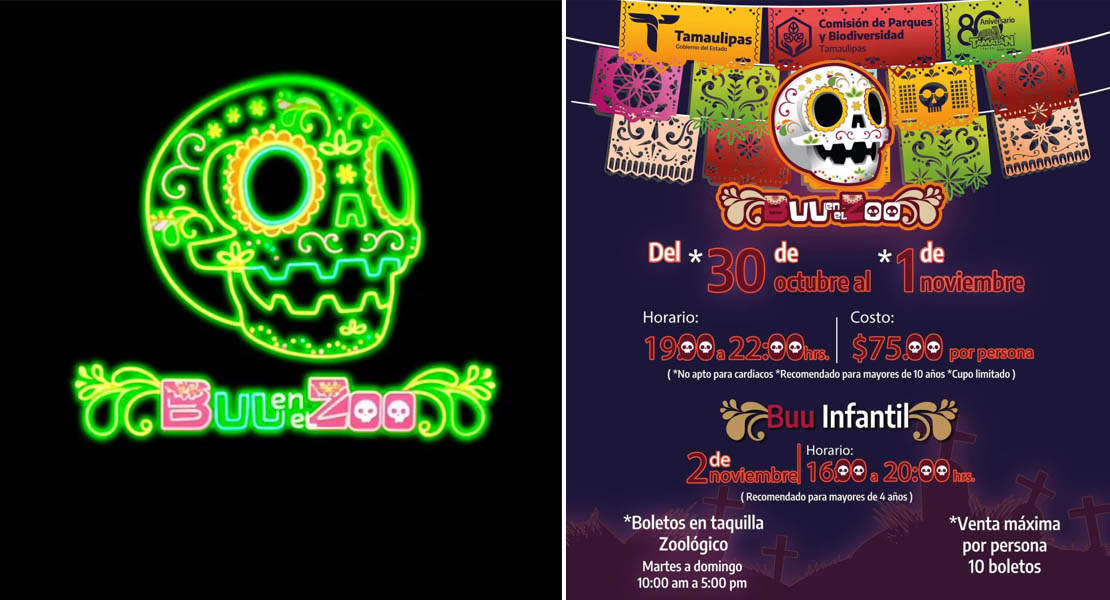 Ciudad Victoria, Tamaulipas.- La Comisión de Parques y Biodiversidad de Tamaulipas, invita a las familias a vivir la magia del Día de Muertos con el espectacular “Buu en el Zoo”, que tras el éxito de ediciones pasadas, regresa con mayor emoción en cuatro fechas, para llenarte de sorpresas y tradiciones en un ambiente único.