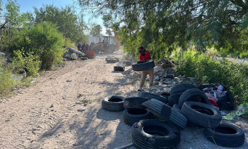 Reynosa, Tam.- El Gobierno Municipal del Presidente Carlos Peña Ortiz ejecuta labores de limpieza en el bulevar Monte de los Olivos, del fraccionamiento Puerta Grande, sitio que cientos de personas han convertido en basurero clandestino, poniendo en riesgo la salud y seguridad de la población.