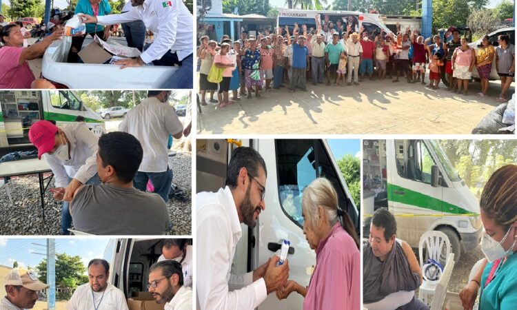 En la zona de La Barranquita, Cortina Beltrán encabezó las acciones de atención con consultas de medicina general y especialidad, entrega de medicamentos, aplicación de vacunas y distribución de artículos de higiene personal.