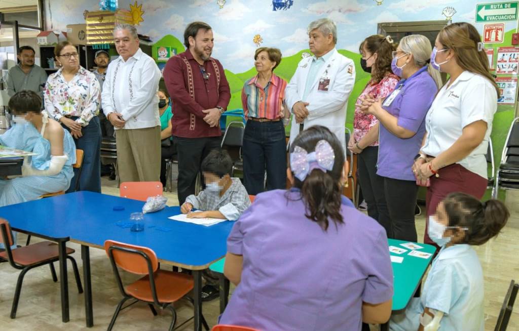 Durante la visita del funcionario educativo, estuvo acompañado por el director del Hospital Infantil, Vicente Plascencia Valadez, así como de autoridades de salud y educación, que recorrieron las estaciones donde las maestras que integran el programa ofrecen clases para que las y los niños sigan con su formación y no se rezaguen en sus estudios.
