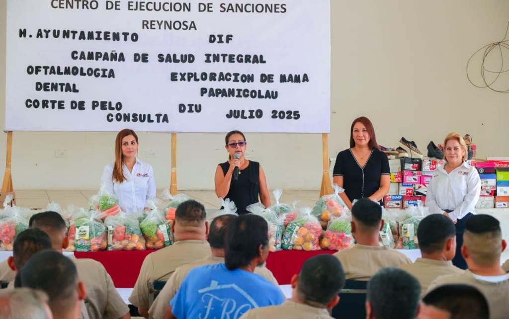 Reynosa, Tam.- Por instrucciones del Alcalde, Carlos Peña Ortiz, el Sistema DIF-Reynosa, que preside Carlos Luis Peña Garza, llevó a cabo una Campaña de Salud Integral en el Centro de Ejecución de Sanciones, CEDES, acercando servicios gratuitos a las personas que se encuentran en proceso de transformación de sus vidas.