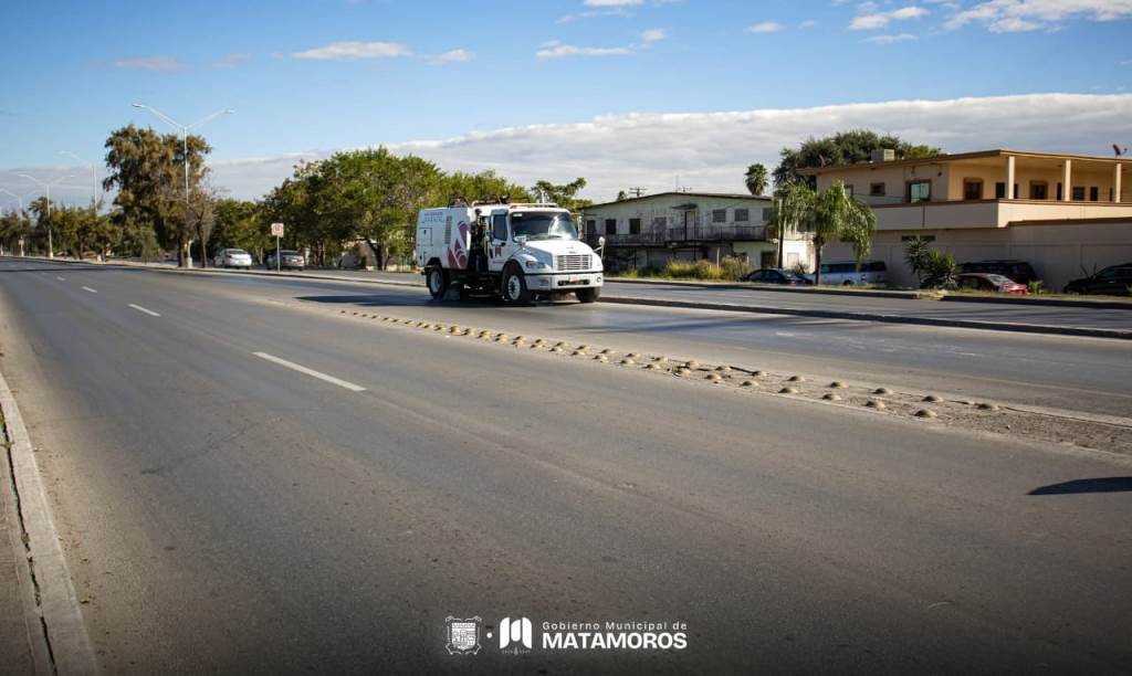 H. Matamoros, Tamaulipas.- El trabajo de limpieza en Matamoros no se detiene. El equipo continúa realizando labores sobre las avenidas con barredoras mecánicas para mantener la ciudad limpia y ordenada.