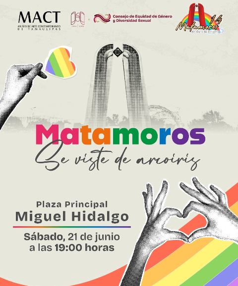 H. Matamoros, Tamaulipas.- El Gobierno de Matamoros, que preside Beto Granados, invita a la comunidad a unirse a la celebración del respeto, la diversidad y el amor en todas sus formas. Este sábado 21 de junio, la Plaza Principal Miguel Hidalgo se llenará de colores y orgullo, convirtiéndose en un espacio donde la comunidad pueda expresarse libremente y sentirse incluida.