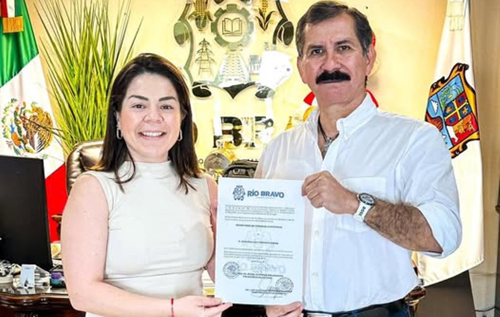 Río Bravo, Tam.- Está tarde el alcalde Miguel Ángel Almaraz le entrego nombramiento a la Lic. Minerva Cornejo el cargo de Secretaria de Fomento Económico de esta administración pública.