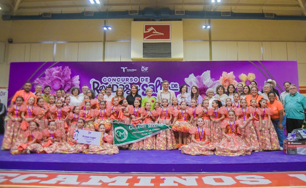 Reynosa, Tam.- Niñas y niños de Reynosa pusieron en alto el nombre de la ciudad, al destacar en el Concurso Estatal de Rondas y Salto de Cuerda “La Tradición Nos Une”, organizado por el Sistema DIF Tamaulipas que preside la Dra. María de Villarreal, y encabezado por el Gobernador del Estado, Américo Villarreal Anaya, que se llevó a cabo en Ciudad Victoria, ofreciendo el Sistema DIF-Reynosa, que dirige Carlos Luis Peña Garza, todo su respaldo en estas actividades.
