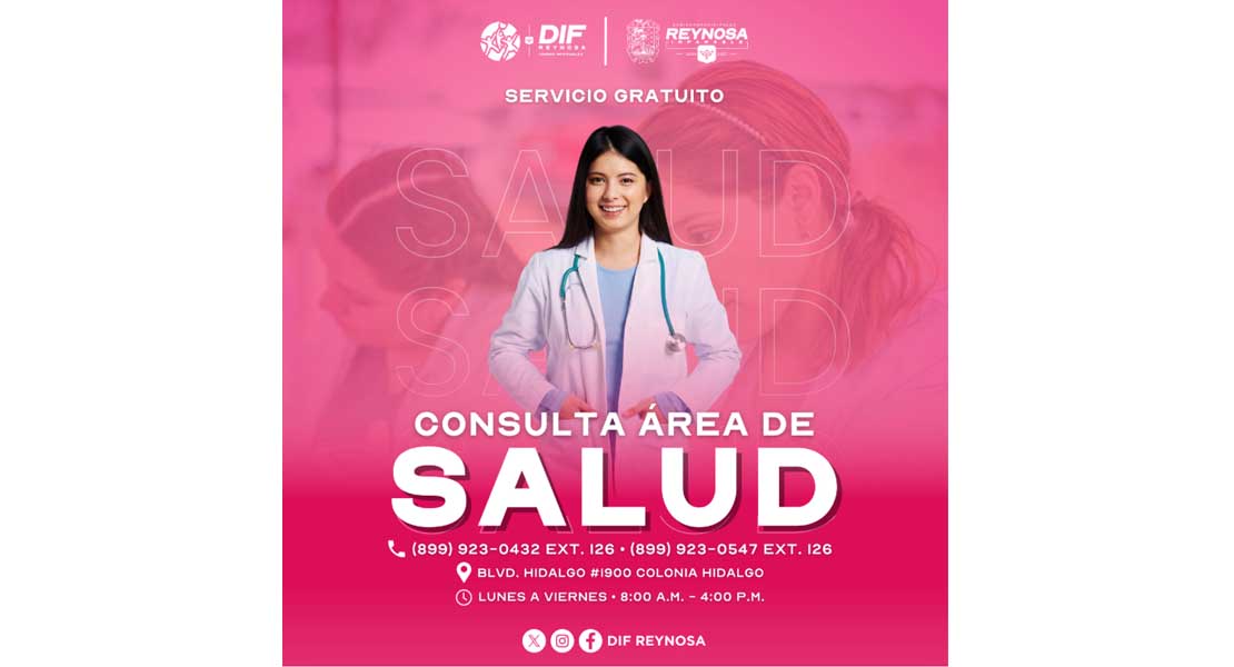 Reynosa, Tam.- A fin de cuidar la salud, el Sistema DIF-Reynosa, que preside Carlos Luis Peña Garza, reitera su compromiso con el bienestar de la población, ofreciendo servicios médicos totalmente gratuitos para todas las familias.