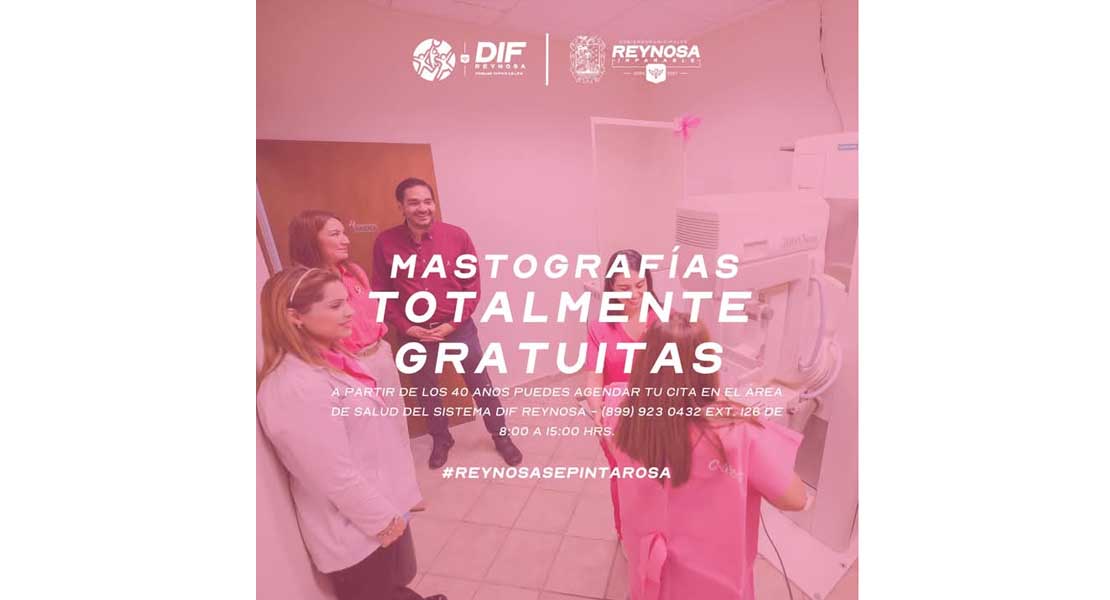 Reynosa, Tam.- Como parte del compromiso con la salud de las mujeres, el Sistema DIF-Reynosa, que preside Carlos Luis Peña Garza, ofrece mastografías totalmente gratuitas durante todo el año, gracias al respaldo del Alcalde, Carlos Peña Ortiz y a los recursos recaudados en el evento “Desayuno con Causa”, realizado en el mes de octubre.