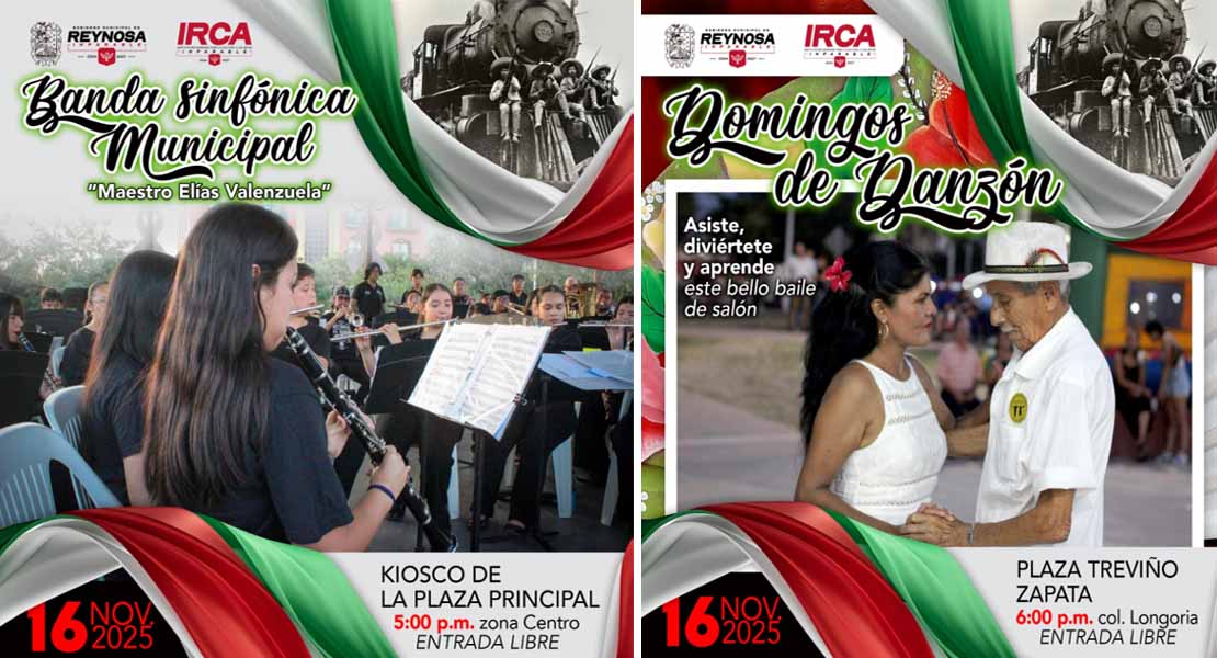 Reynosa, Tam.- Siguiendo las instrucciones del Alcalde Carlos Peña Ortiz, el Instituto Reynosense para la Cultura y las Artes invita a las familias reynosenses a disfrutar de las actividades culturales gratuitas programadas para este domingo 16 de noviembre.