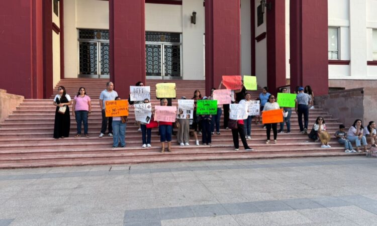 El grupo de familiares y amigos de Emma Nereyda Rivera Martínez permanecieron en la escalinata de Palacio de Gobierno para exigir la aparición con vida de su ser querido.