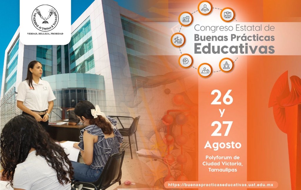 Ciudad Victoria, Tam.- Con el compromiso de fortalecer la calidad educativa en los niveles de educación Media Superior y Superior, la Universidad Autónoma de Tamaulipas (UAT), en colaboración con el Gobierno del Estado, a través de la Secretaría de Educación, organiza el Congreso Estatal de Buenas Prácticas Educativas, a celebrarse los días 26 y 27 de agosto en Ciudad Victoria.