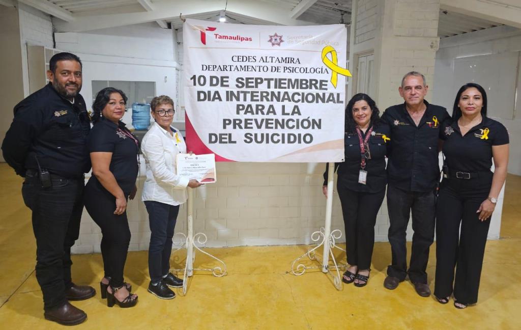 Altamira, Tamaulipas.- Dentro de las actividades realizadas por la Secretaría de Seguridad Pública de Tamaulipas (SSPT) durante el Día Mundial de la Prevención del Suicidio, conmemorado cada 10 de septiembre, en el Centro de Ejecución de Sanciones (CEDES) del municipio de Altamira llevó a cabo la plática “Suicidio: La Prevención Eres Tú”, dirigida a personas privadas de la libertad (PPLs) del área varonil.