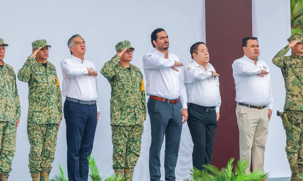 Presidió Gobernador Américo Villarreal Anaya Honores a la Bandera acompañado por el Alcalde Carlos Peña Ortiz y el General Brigadier DEM Fernando Colchado Gómez