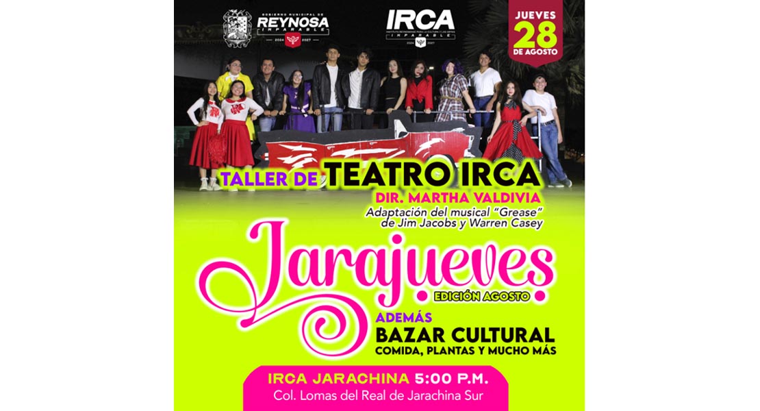 Este evento, que se llevará a cabo el 28 de agosto a las 5:00 P. M. en la sede Jarachina del Instituto, presentará la puesta en escena del musical Grease a cargo del Taller de Teatro, así como venta de libros, plantas, artesanías y comida.