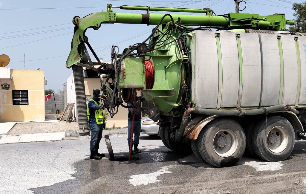 Reynosa, Tam.- Atendiendo las indicaciones del Presidente Municipal, Carlos Peña Ortiz, la Comisión Municipal de Agua Potable y Alcantarillado de Reynosa llevó a cabo trabajos de sondeo en la línea general de drenaje sanitario en diversos sectores de la ciudad, con el propósito de detectar y prevenir obstrucciones que puedan afectar el buen funcionamiento del sistema sanitario.