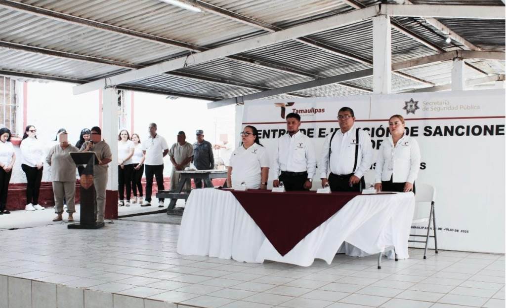 La ceremonia contó con la presencia del director del CEDES Victoria, Fernando Aguilar De la Garza; el subdirector jurídico, José Luis Salazar Peña; la jefa de Mediación Penitenciaria, Dulce Rosario Villanueva Bustos; y la jefa del Departamento de Educación, Cultura y Deporte, Perla Aurora Escamilla Niño.