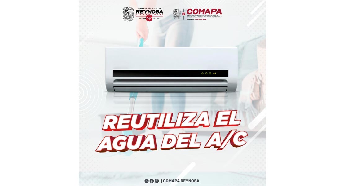 Reynosa, Tam.- La Comisión Municipal de Agua Potable y Alcantarillado de Reynosa, invita a la ciudadanía a implementar prácticas sencillas y efectivas para el cuidado del vital líquido, como lo es el aprovechamiento del agua que se genera de los aparatos de aire acondicionado. Este recurso, que en muchas ocasiones se desperdicia al dejarlo escurrir, puede convertirse en una alternativa útil para diversas actividades domésticas, contribuyendo a reducir el consumo de agua potable y fomentando un uso más consciente en los hogares.