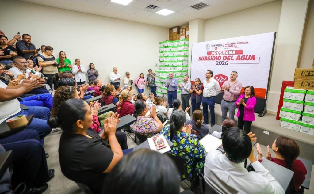 Reynosa, Tam.- El beneficio del programa municipal “Subsidio del Agua” fue puesto a disposición del personal del Centro de Salud para el Bienestar número 4, por el Alcalde Carlos Peña Ortiz, en presencia de la Coordinadora Doctora Iliana Villarreal Cantú y del Secretario General del Sindicato Nacional de Trabajadores de la Secretaría de Salud en Reynosa, Julio César Rodriguez López.