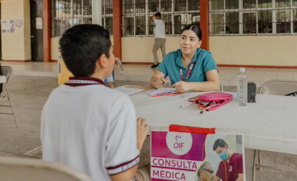 Matamoros, Tam.- Atendiendo de manera integral las necesidades de la población, el Sistema DIF Matamoros que preside Anita de Granados, fortaleció la atención a las familias con una brigada asistencial en la Secundaria Técnica #46 “Miguel Hidalgo y Costilla” de la Colonia México Agrario, con la finalidad de promover el cuidado a la salud, la seguridad alimentaria, así como un entorno de apoyo solidario.