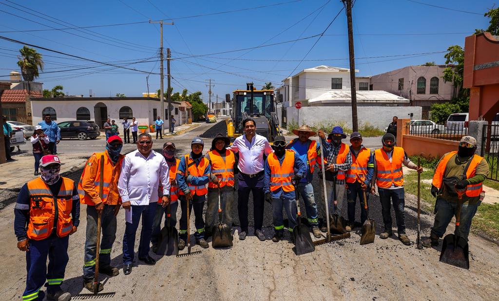 A la obra de rehabilitación que dio inicio en la calle Francisco Nicodemo entre L. Aguirre y Bernabe Sosa, el Alcalde acudió acompañado por funcionarios municipales y miembros del Cabildo, que atestiguaron el mejoramiento de la colonia, un beneficio del Programa de Obra Más Grande en la Historia de Reynosa.