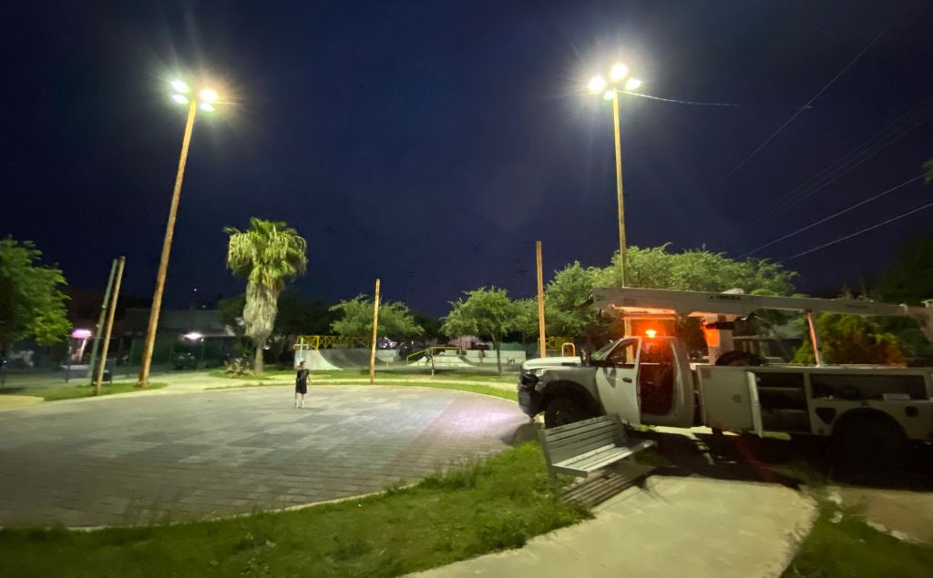 Reynosa, Tam.- “Me complace anunciar que, a través de la Dirección de Alumbrado Público del R. Ayuntamiento, hemos rehabilitado la iluminación del Parque del Bienestar La Joya, lo que permitirá que las familias puedan disfrutar de un espacio público seguro y agradable para su esparcimiento y recreación”, declaró el Alcalde Carlos Peña Ortiz.