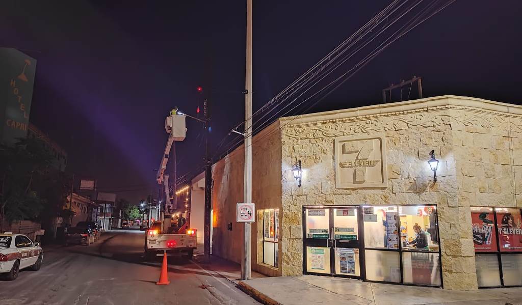 Reynosa, Tam.- La Dirección de Alumbrado del Gobierno de Reynosa, que preside Carlos Peña Ortiz, llevó a cabo una jornada nocturna de rehabilitación de líneas y lámparas en la Zona Centro y en la colonia 20 de Noviembre.