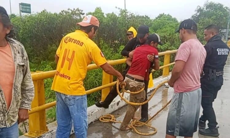 Asimismo, se visualizó a un hombre agarrado de un árbol, por lo que con ayuda de una soga se rescató a Ricardo Mireles Castillo, de 32 años de edad, con domicilio en la calle Flor de Liz de la colonia Moderna.