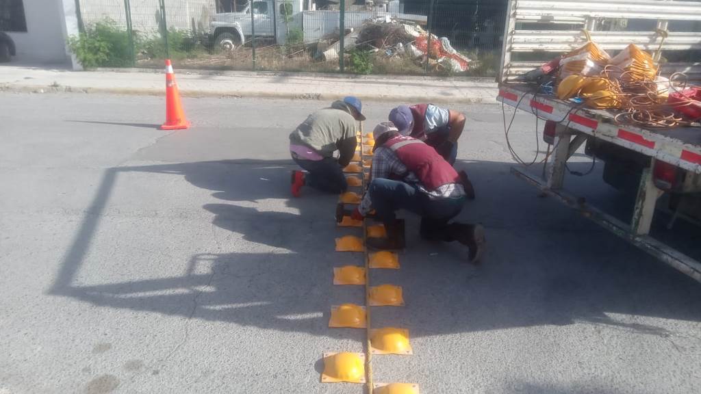 En este sentido, trabajadores de la Coordinación General de Servicios Públicos Primarios instalaron boyas en la escuela primaria José Pilar Palafox, ubicada en la calle Honduras de la colonia Anzalduas, en respuesta a la petición #31667 presentada por la comunidad escolar y los vecinos de la zona.
