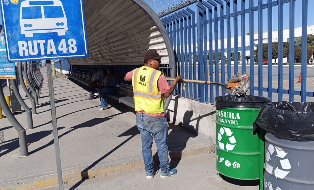 Durante el recorrido, se visitaron los parabuses: puente Panasonic, puente Húngaro, Periférico, bulevar Hidalgo, y Juárez, donde se llevó a cabo el levantamiento de basura y se verificó el estado de los espacios públicos.