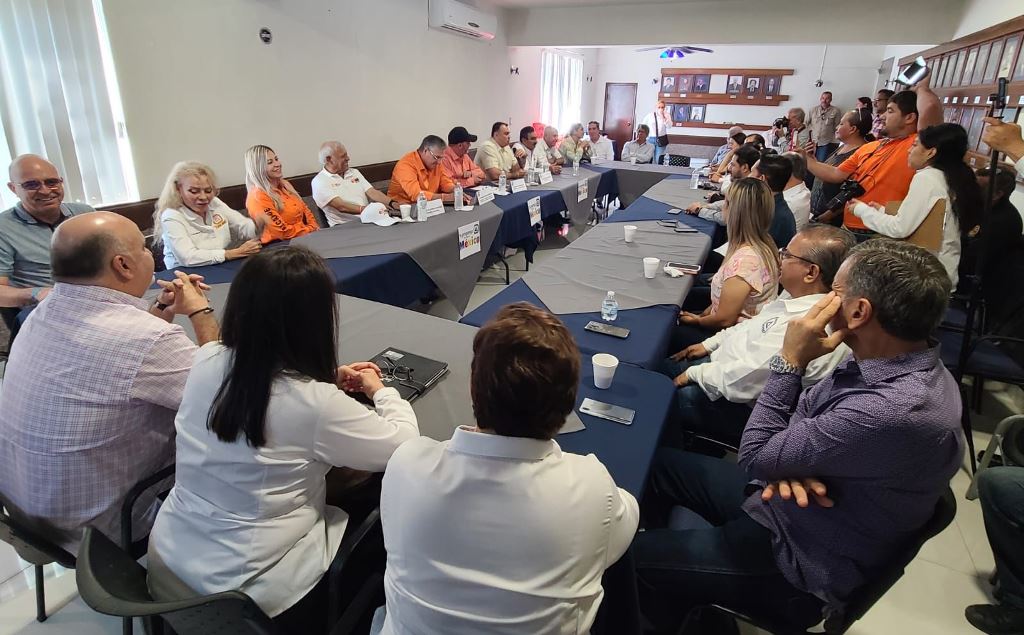Reynosa, Tam.- Representantes del comercio establecido y miembros de la Cámara Nacional de Comercio, Servicios y Turismo de Reynosa conocido por sus siglas (CANACO) se reunieron con el candidato de Movimiento Ciudadano a la Alcaldía Rigo Ramos, para discutir temas relacionados con el comercio local. Durante la reunión, los socios se mostraron muy atentos y participativos, abordaron diversos temas, en los que resaltaron la situación económica de la zona, Seguridad y la necesidad de apoyo para los pequeños negocios.