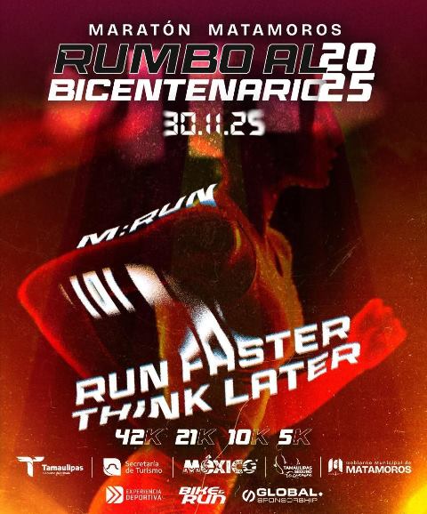 H. Matamoros, Tamaulipas.- Matamoros se prepara para un momento histórico, pues este 30 de noviembre llega el Maratón Matamoros 2025: Rumbo al Bicentenario, una experiencia que combina deporte, historia y orgullo en el marco de los 200 años de nuestra ciudad.
