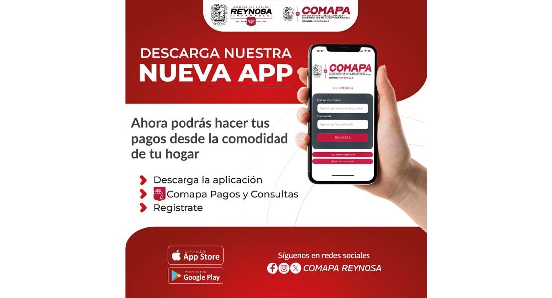 Reynosa, Tam.- La COMAPA de Reynosa recuerda a las y los usuarios que cuentan con la aplicación móvil “COMAPA Pagos y Consultas”, mediante la cual pueden realizar pagos y consultas de su cuenta de manera rápida, segura y sin salir de casa.