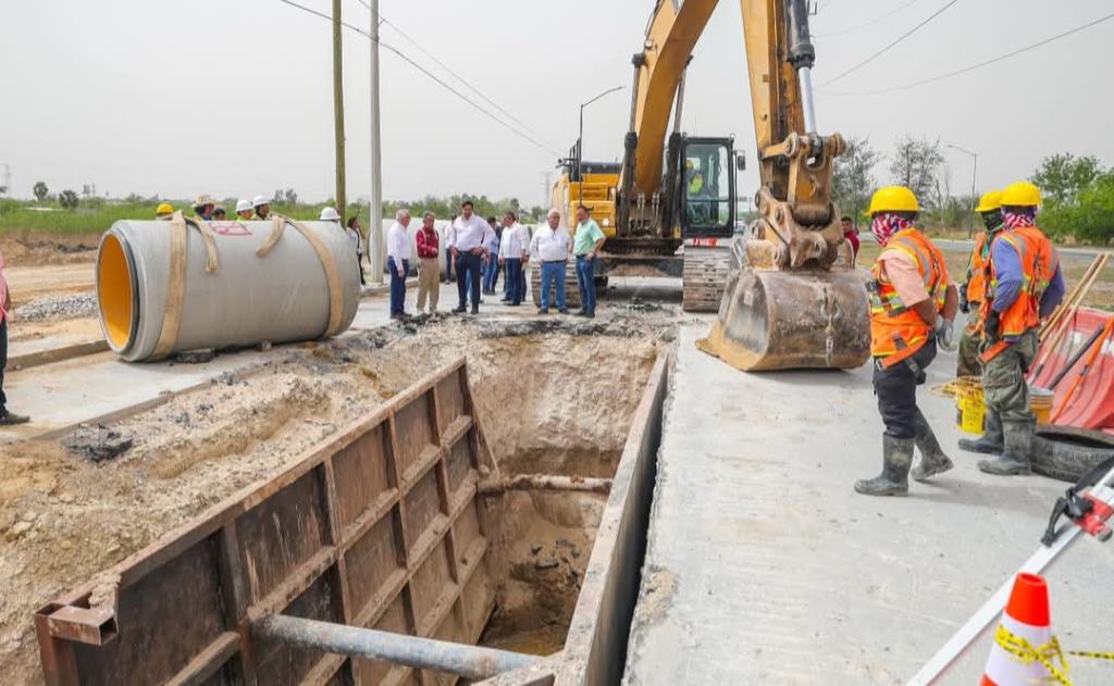 Reynosa, Tam.- El Presidente Municipal Carlos Peña Ortiz supervisó el avance de la construcción del Colector Escondida 1, en el cual se invierten 44’356,025.06 Pesos, en 1,104 metros lineales de tubería de 48 pulgadas de diámetro, equivalentes a 1220 milímetros, para beneficio de más de 269 Mil habitantes.